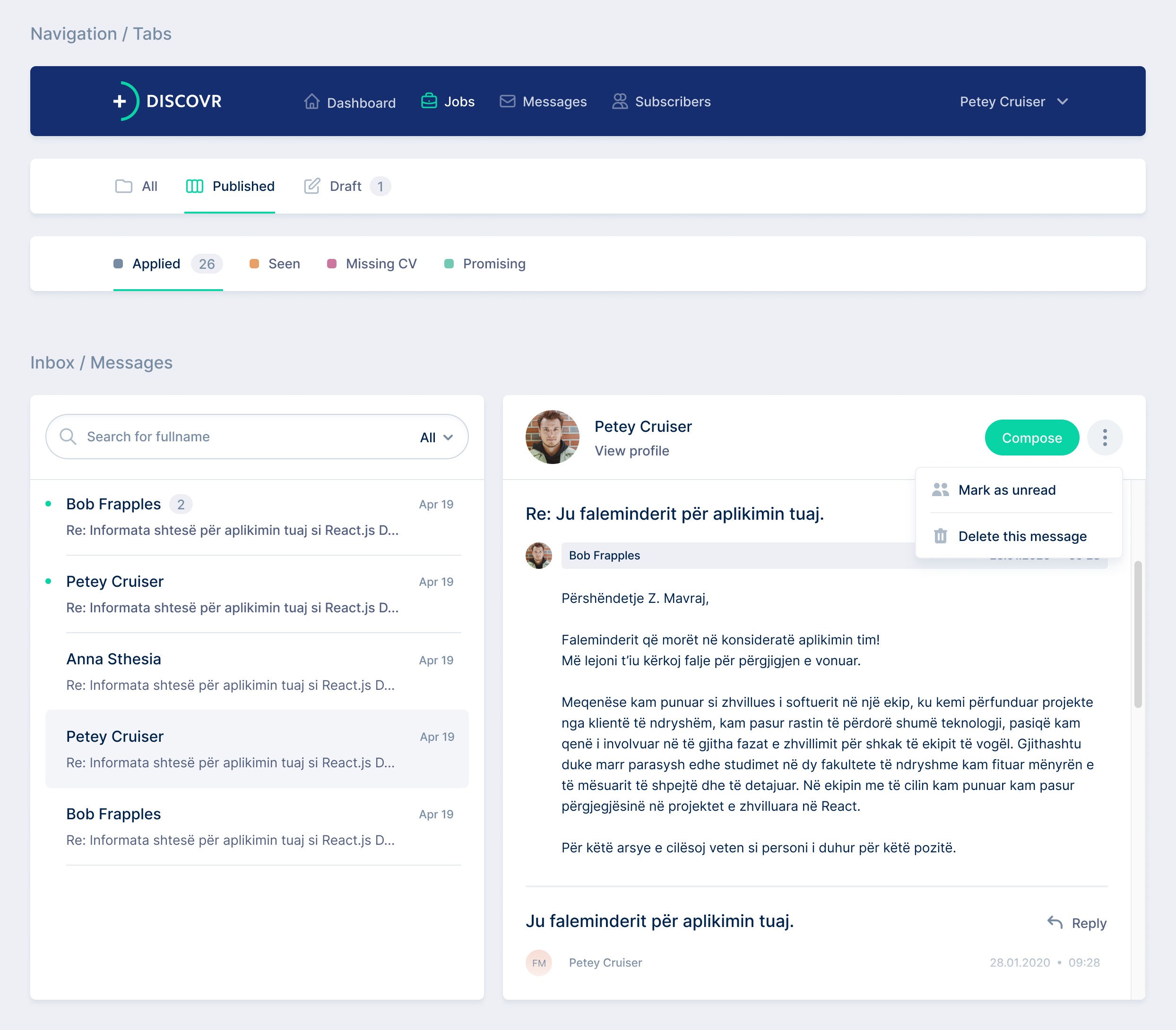 It also provides robust features for managing conversations with applicants, enabling employers to easily create, send, and respond to messages from applicants.