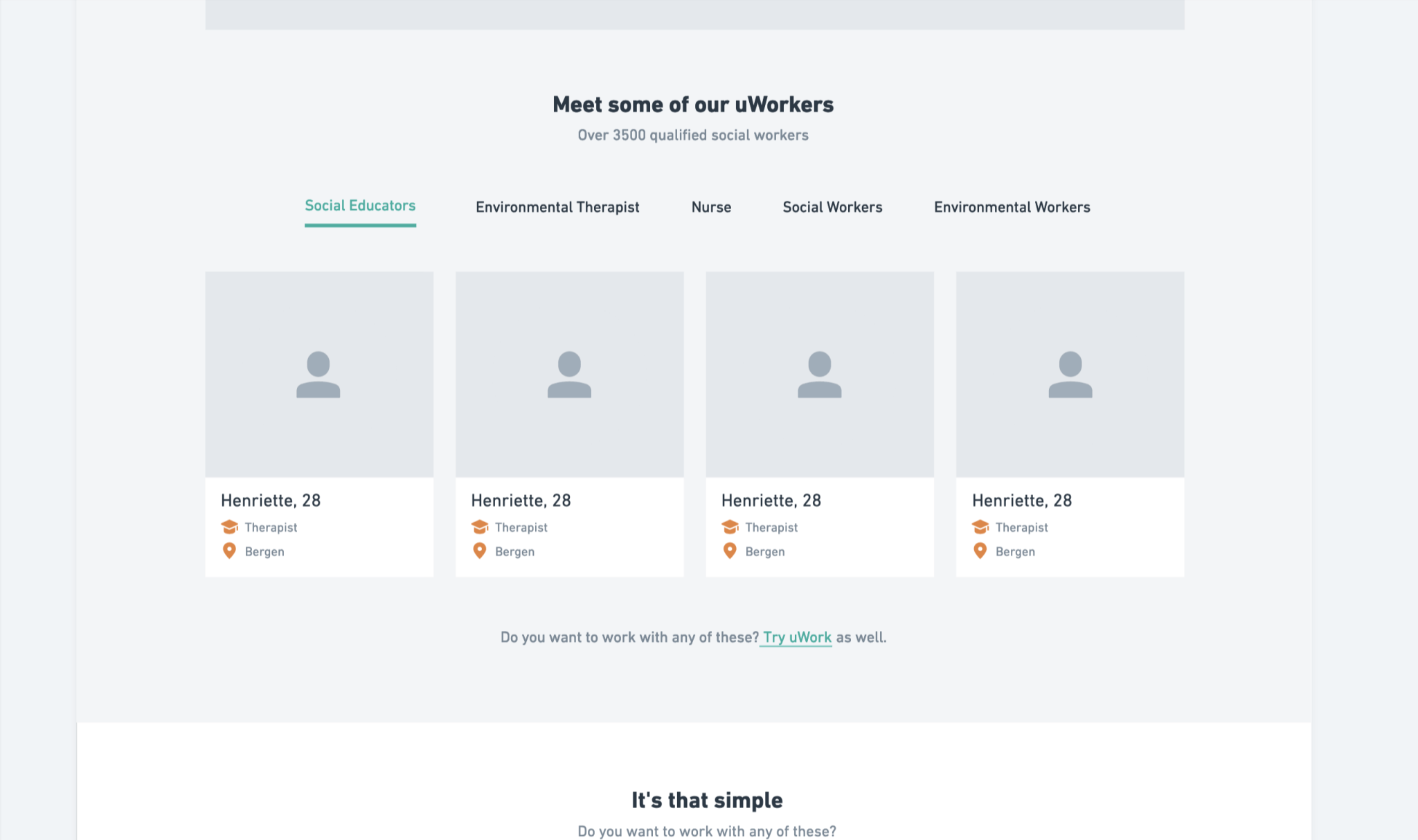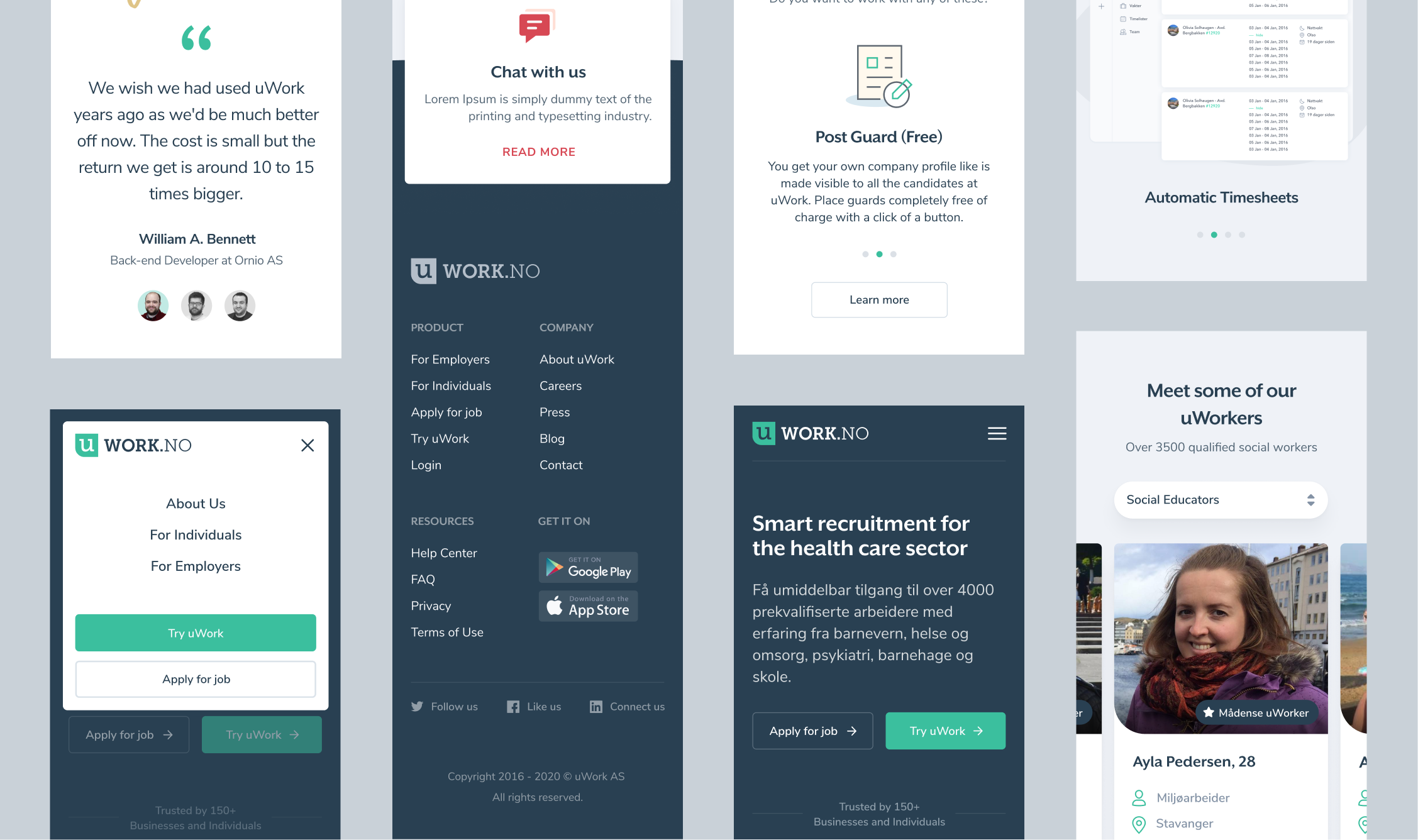 In January 2020, while working at Ornio, I was tasked with redesigning and statically coding the website of uWork AS, an innovative online staffing agency that connects companies with Norway's best therapists, nurses, educators, and other healthcare professionals.
