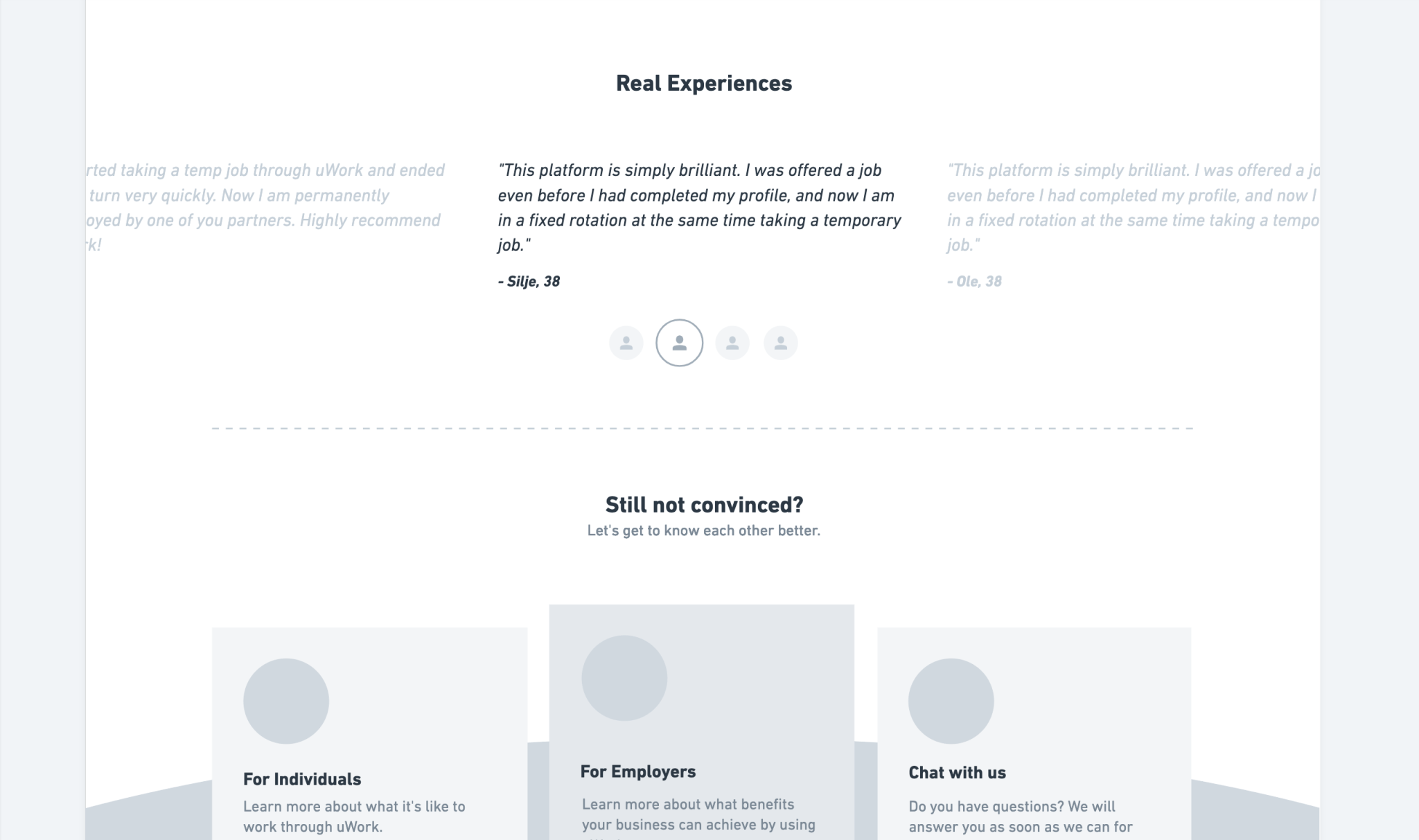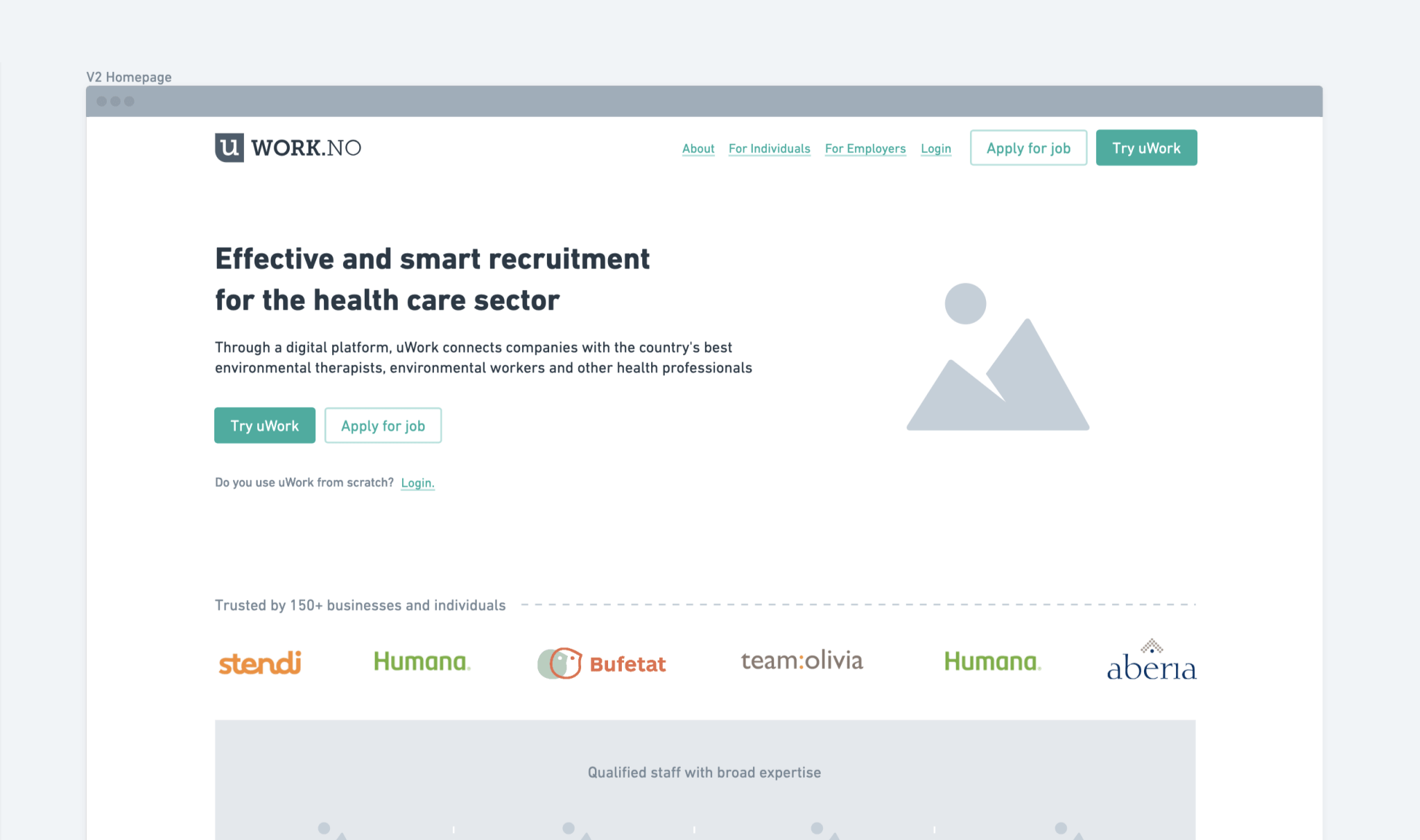 The goal was to have a website demonstrating uWork's core function —connecting staffing companies with Norway's top healthcare professionals, while also highlighting the key benefits for healthcare professionals and providing an intuitive signup flow for them.