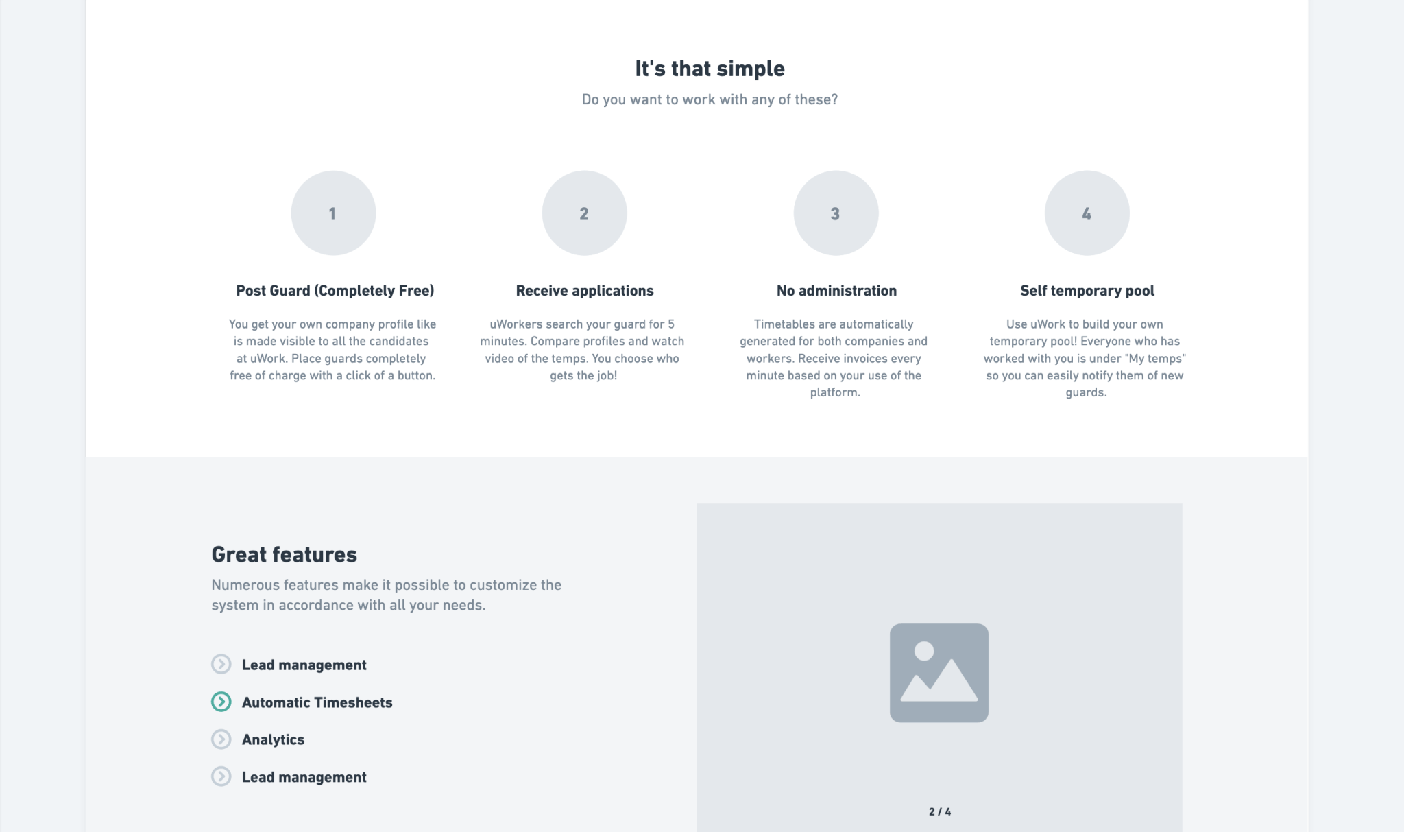 For uWork's website, we've created compatible components. These components are the key building blocks that work together to create an effective online presence and communicate uWork's message to its target audience.